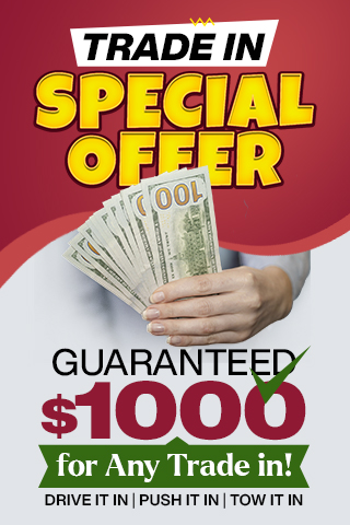 ¡Traiga su vehículo para cambio—lo conduzca, lo empuje o lo remolque—¡y le pagaremos un mínimo de $1,000!